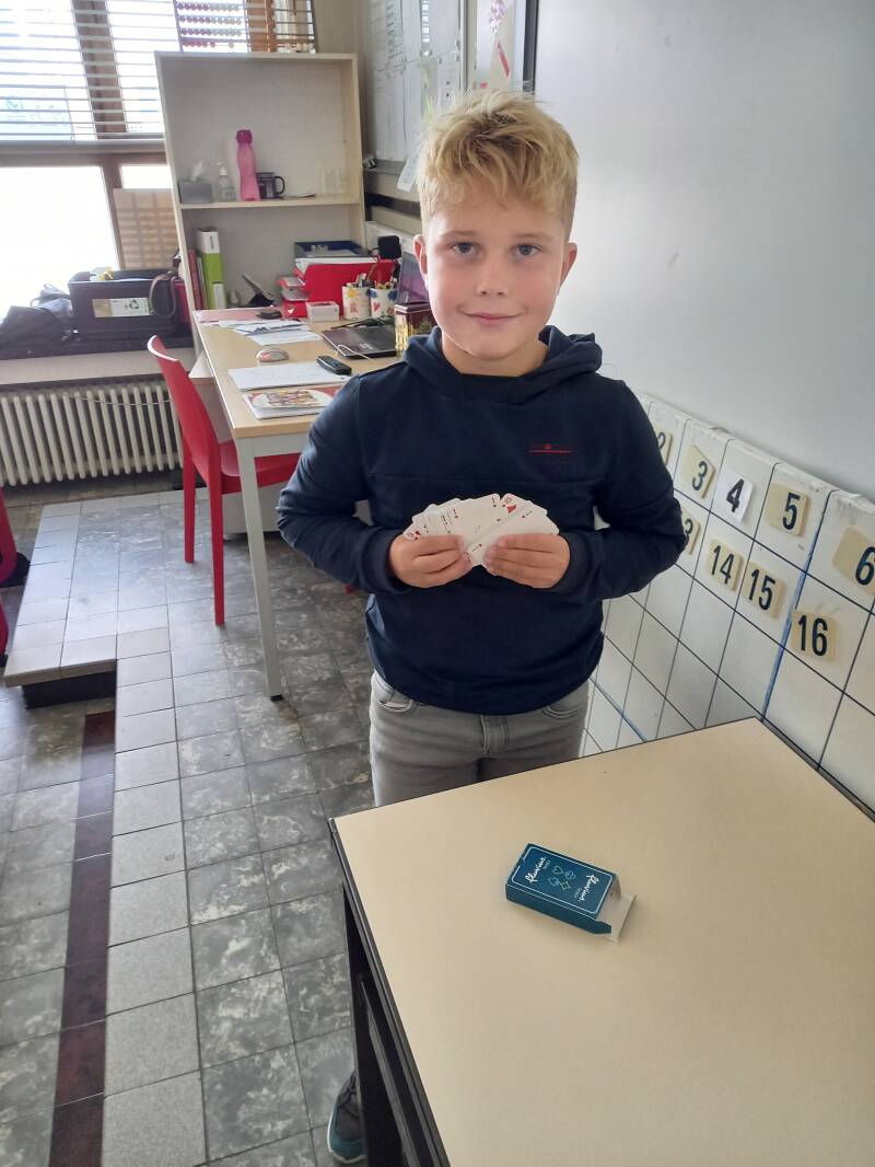 We kwamen de spelregels van ons lievelingsspel voorstellen aan onze klasgenoten. Niet toevallig gekozen deze week. Bij het werken met de axenroos dieren, in de maand oktober de Wasbeer, was onze tip : Ik ben aandachtig als iemand iets vertelt. Ook een tip bij de Pauw van de maand september kwam aan bod : Ik durf me laten zien.