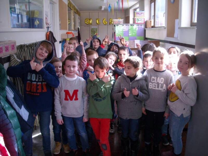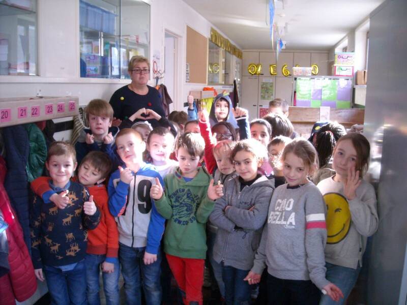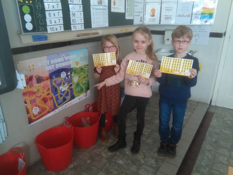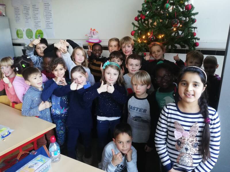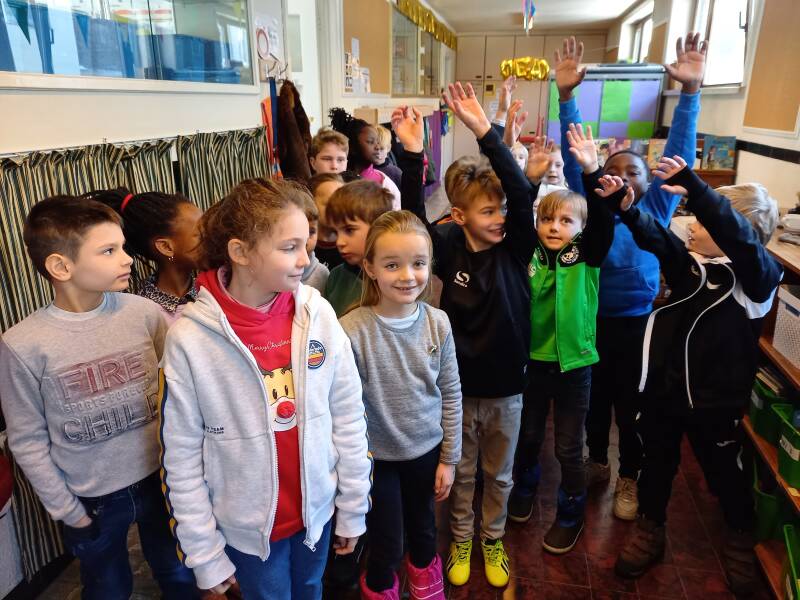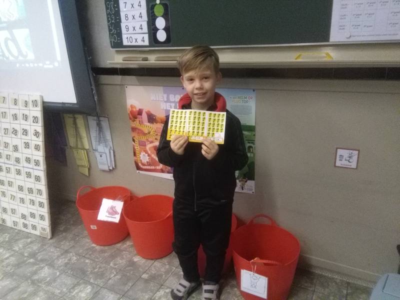 En ja, waar we lang van droomden werd werkelijkheid. Met maar liefst 1901 stickers die we kleefden, een gemiddelde van 79 per leerling, werden we samen met de paarse kleuterklas uitgeroepen tot de 'WINNAARS'.