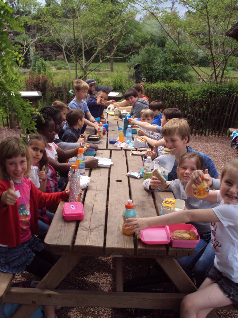 We beleefden een hele leuke dag. De weergoden waren ons goed gezind op een enkel buitje na in de namiddag. We maakten kennis met heel wat dieren. We genoten van een gezellige picknick in open lucht. We konden ons uitleven op de grote speeltuin. Moe maar voldaan keerden we terug naar Iddergem.
