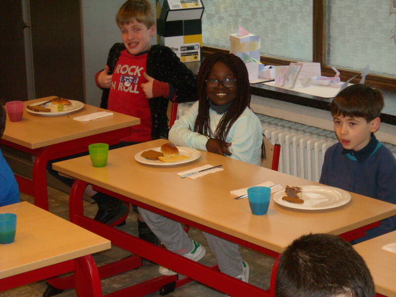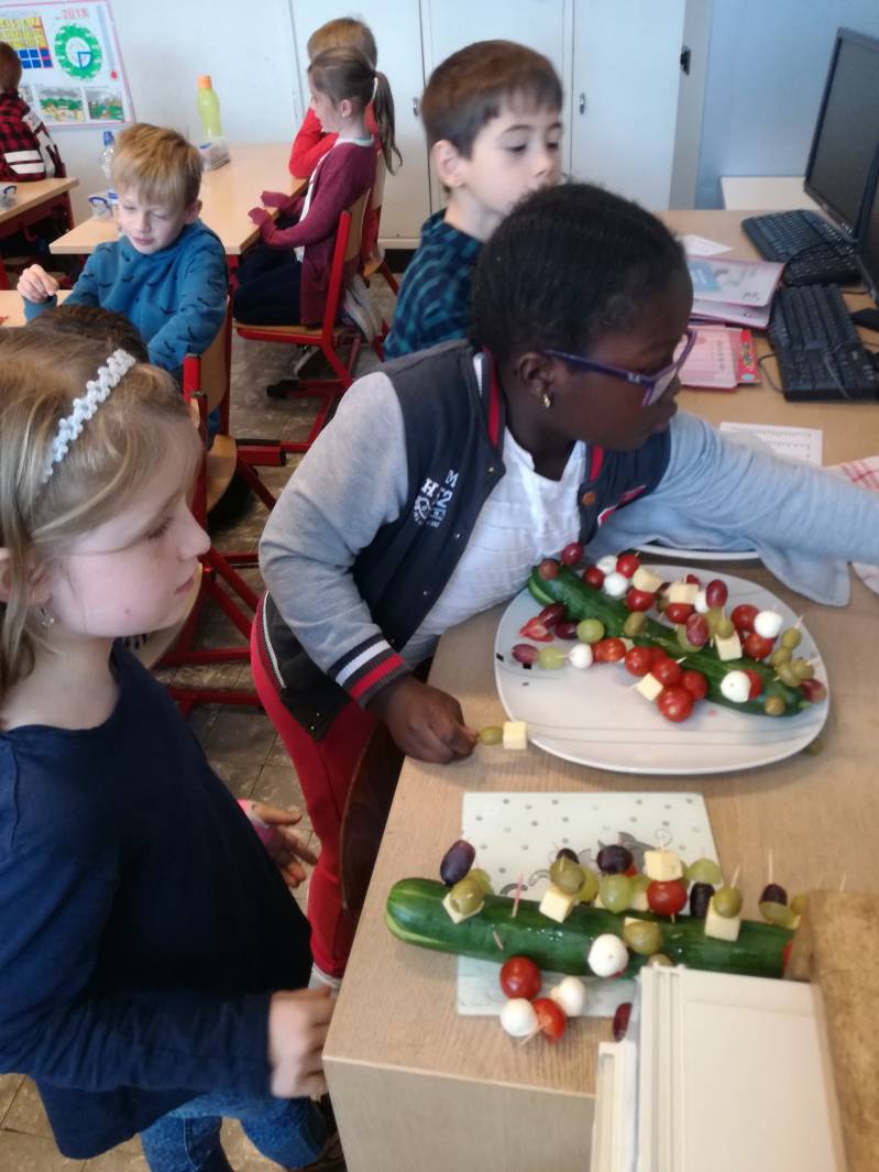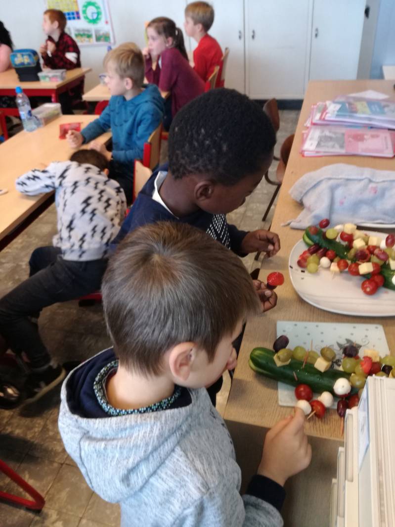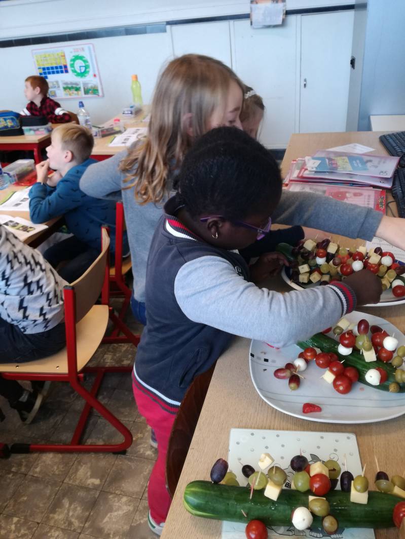 Het derde leerjaar maakt voor ons iets lekkers klaar. En wij trakteerden hen op gezonde brochettes. Smullen maar!