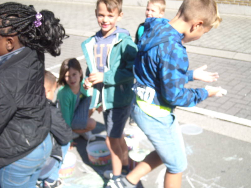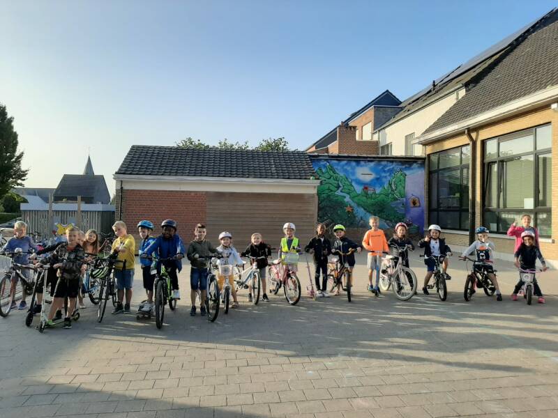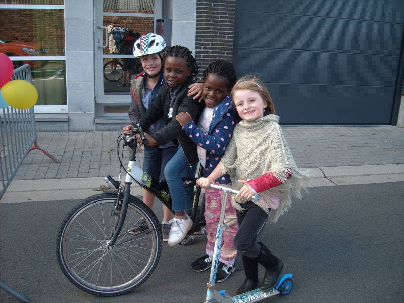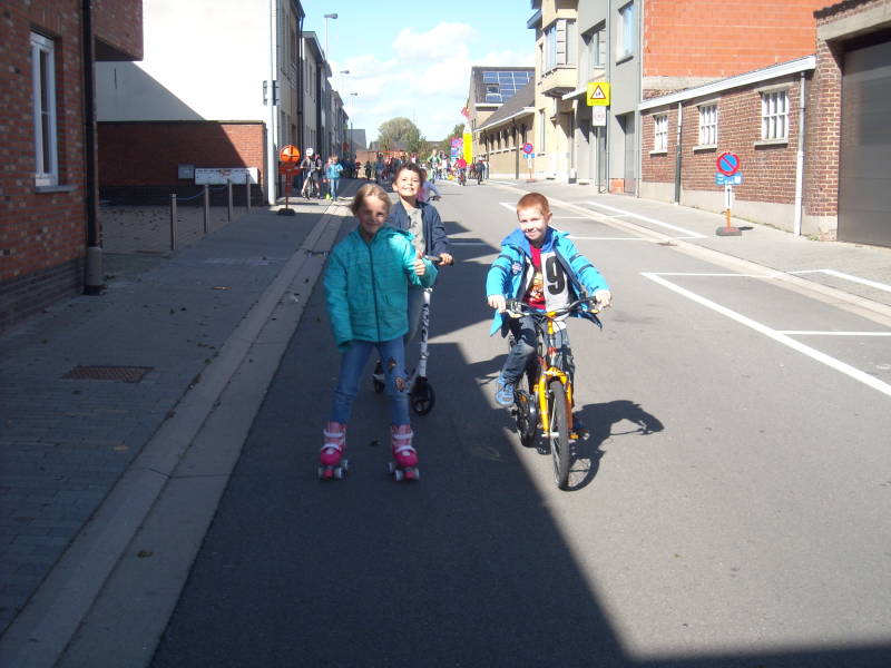 Vandaag kwamen we al strappend en trappend naar school. Ook de Leliestraat werd een dag verkeers- en parkeervrij, voor één dag ons speelterrein.