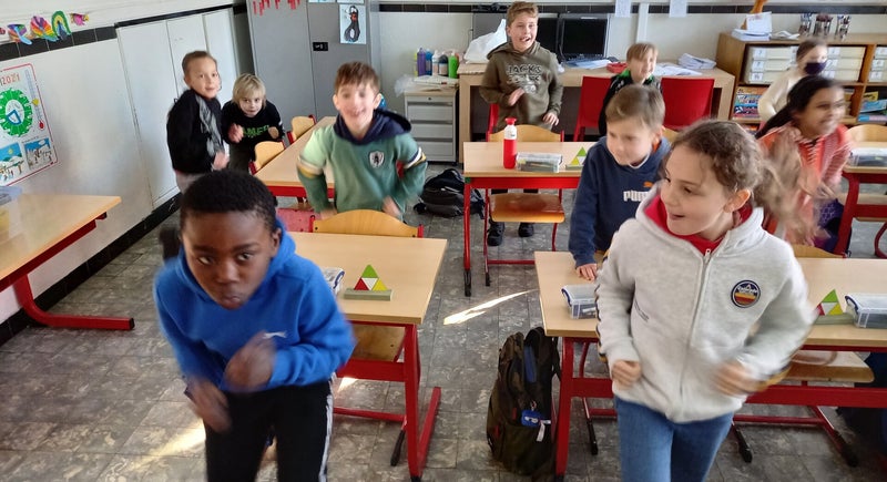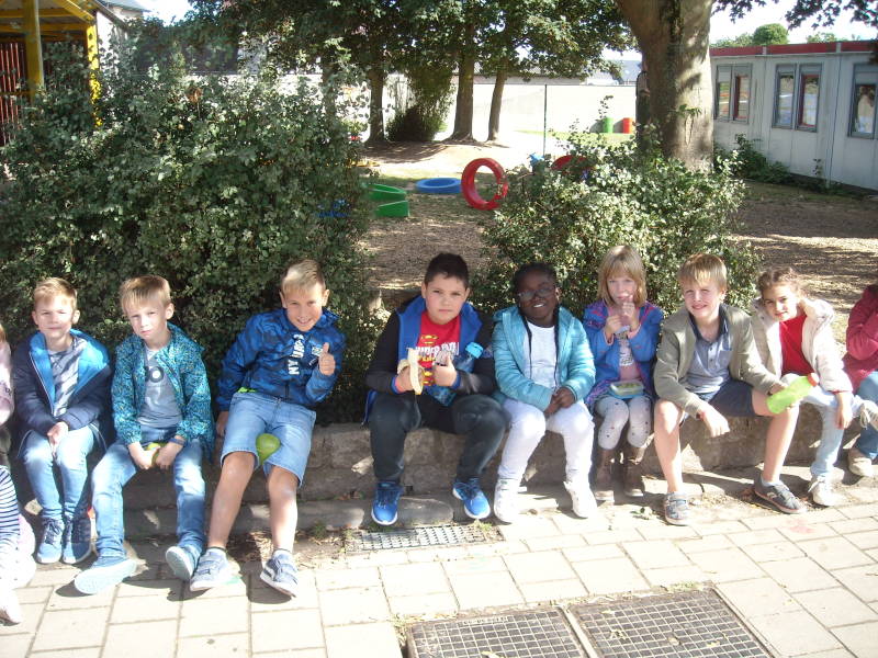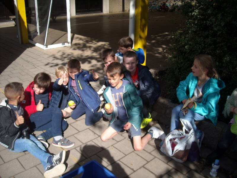 Na een gezond tussendoortje was er dan ook nog de tijd om uit de bol te gaan op het straplied samen de ganse school.