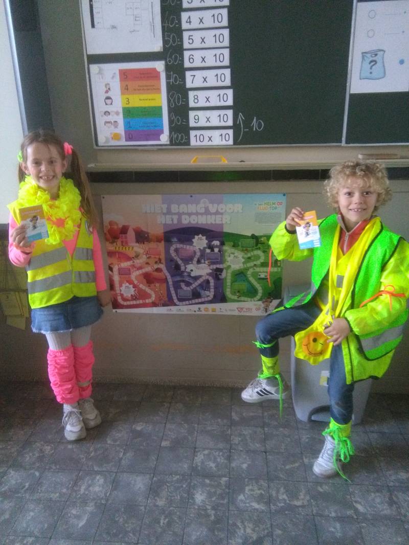 Morgen, maandag 16 november, starten we op school met de actie 'Helm op, fluo top'.