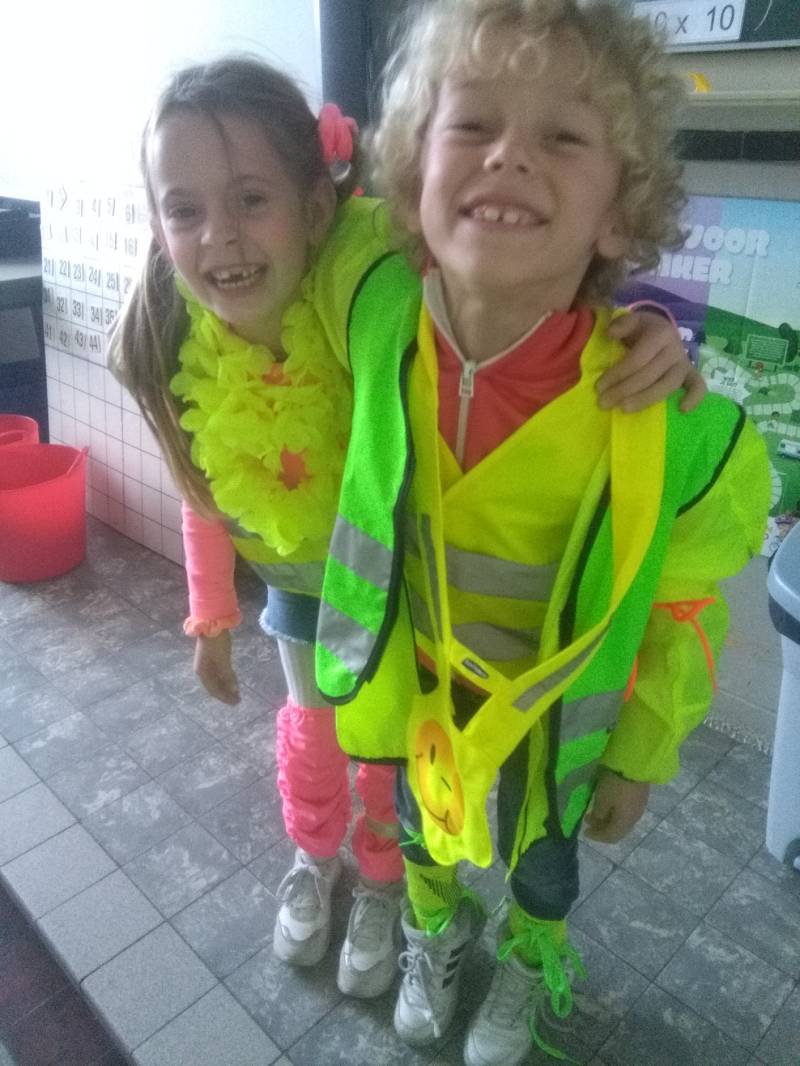 Vrijdag was het dan eindelijk zo ver. We kwamen allemaal zo fluo mogelijk naar school. We showden onze outfit en op het einde van de dag werden de miss en mister fluo van 2 A verkozen. Proficiat allemaal en heel bijzonder aan Yara en Yelle!