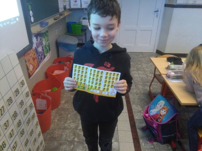 Ook Tobi heeft het gehaald! Op woensdag 15 januari was zijn individuele spaarkaart helemaal vol, hij kan nu samen met Quincy meesparen op de grote klasposter. Proficiat!