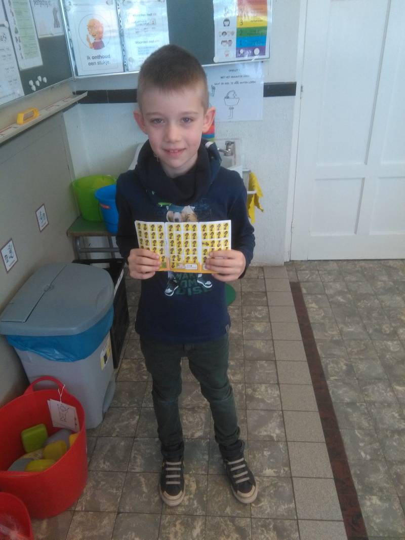 Een dikke proficiat aan Quincy! Als eerste heeft hij zijn spaarkaart vol met stickertjes van deze actie. Tot de krokusvakantie kan hij verder sparen op de klasposter. Wie doet met hem mee? Misschien worden we dan wel net als vorig schooljaar de meest fluo klas van de Toverlelie. We gaan ervoor!